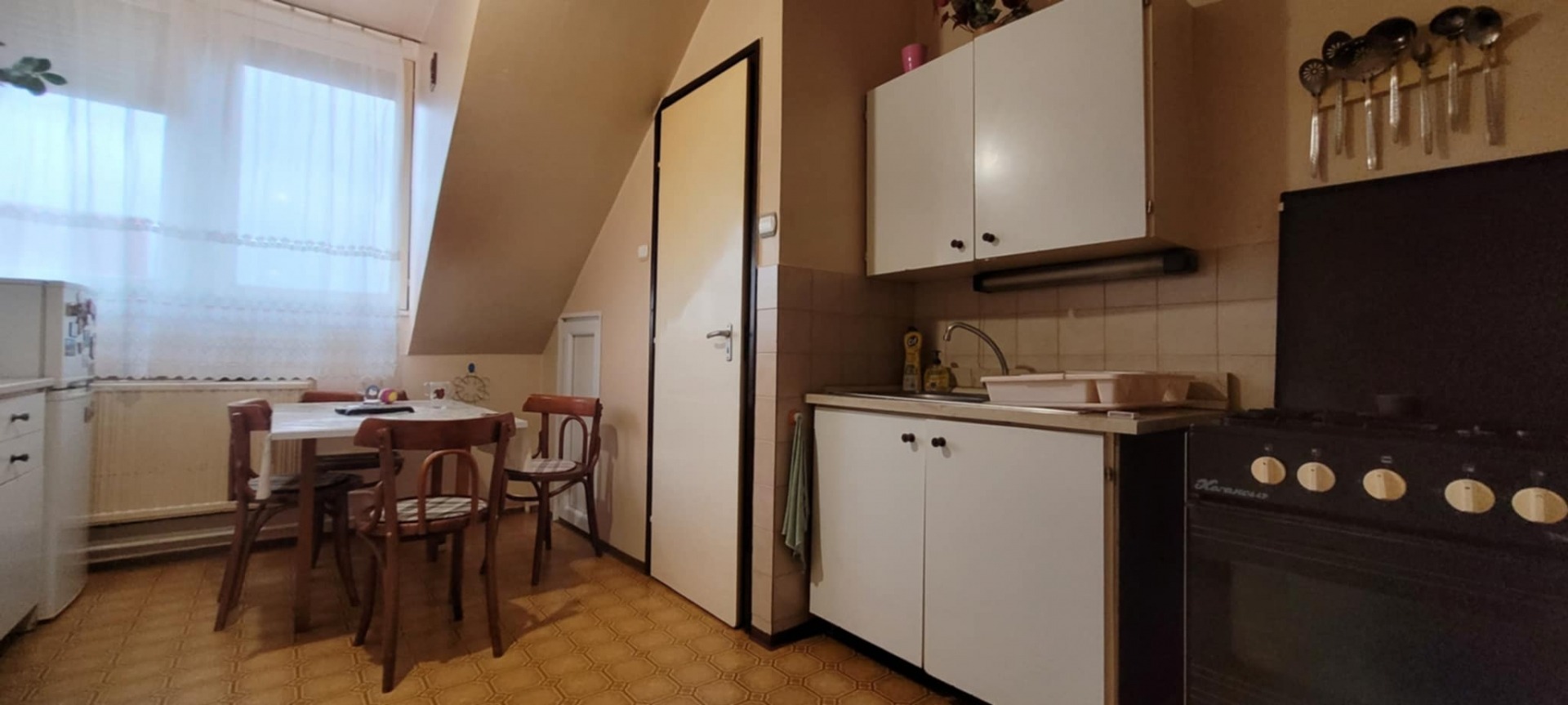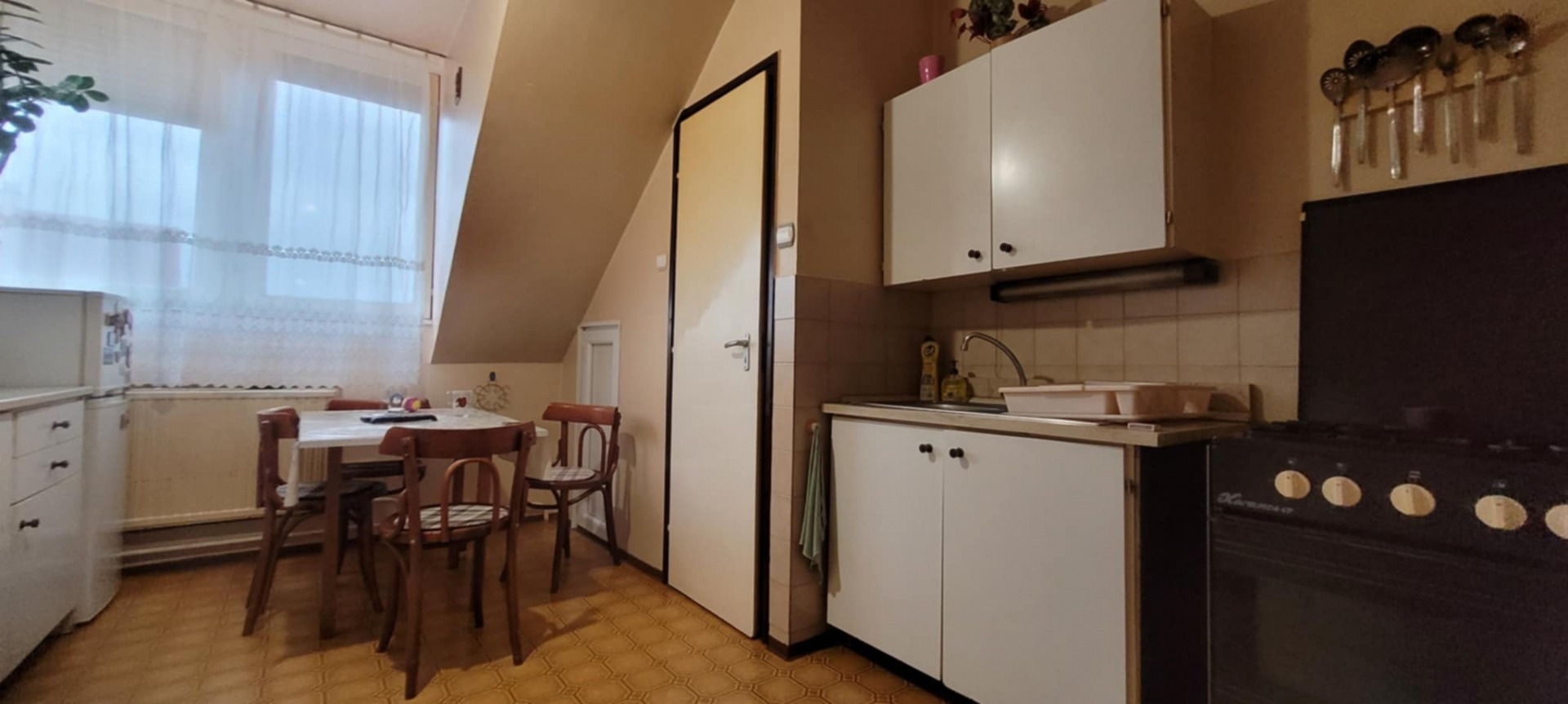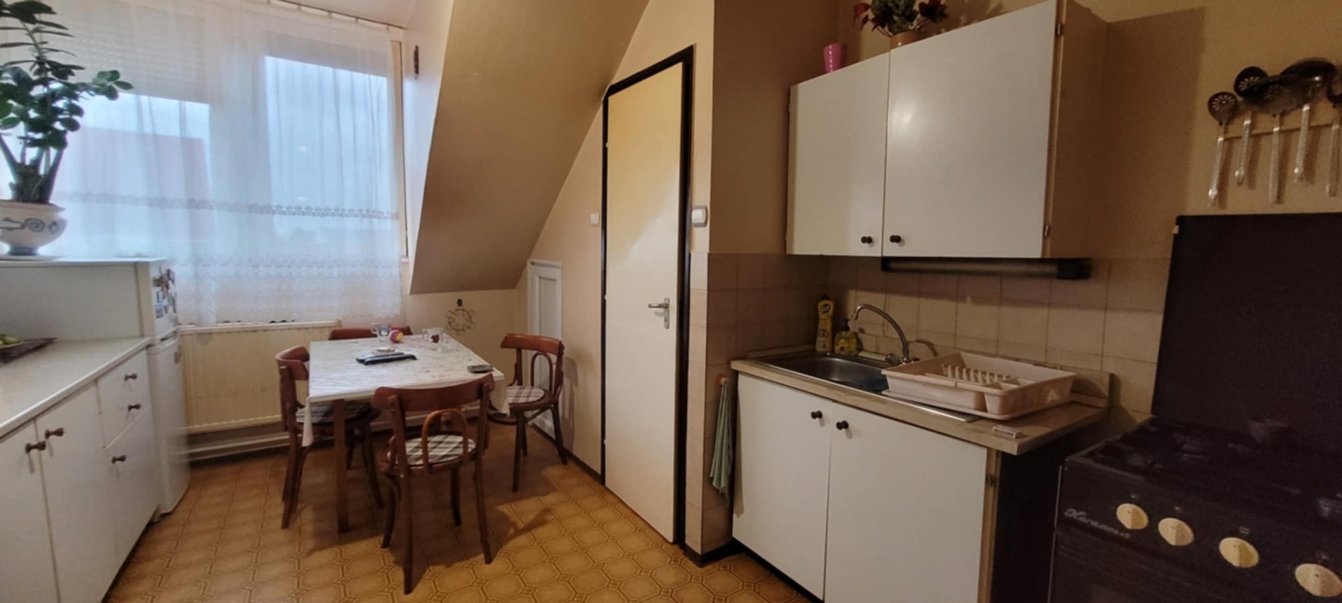 - Belváros övezetében, 4 emeletes társasház legfelső emeletén található